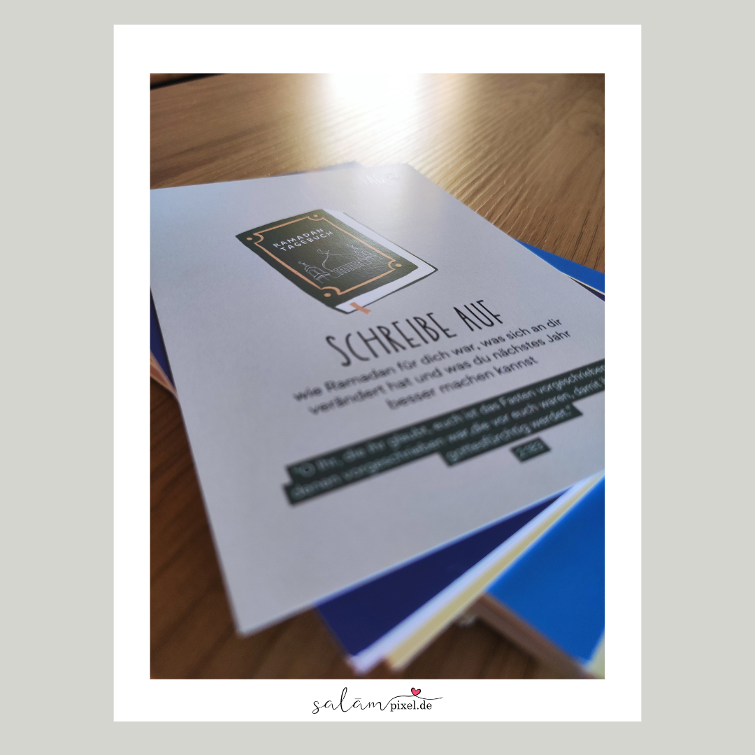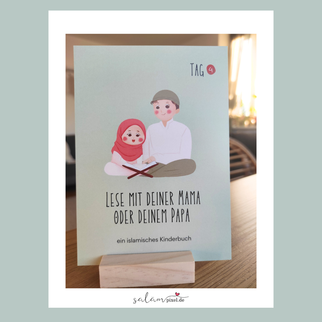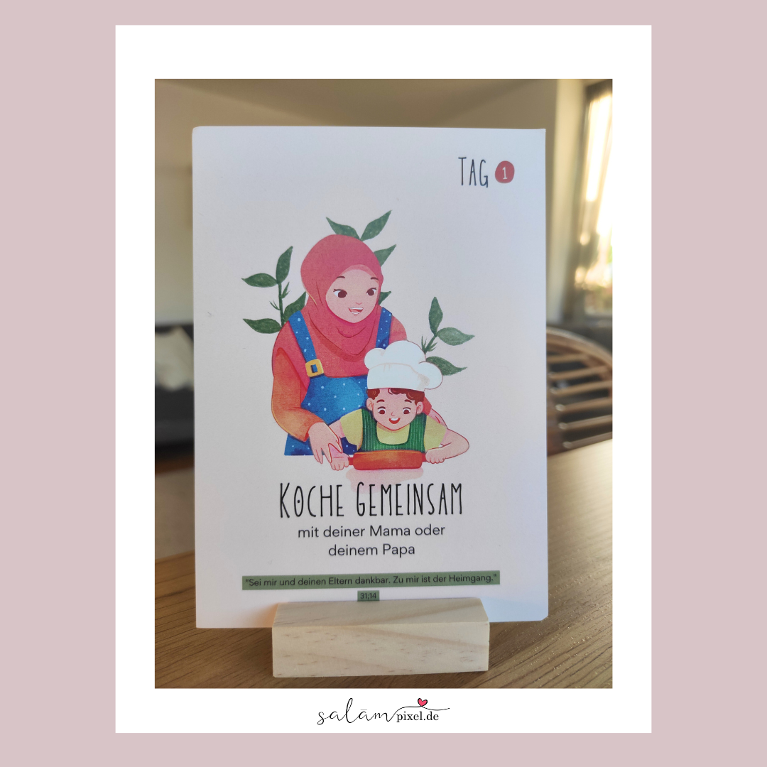 Die Ramadan Karten sind das perfekte Geschenk für Kinder. Es enthält ein 30-tägiges Aktivitätsprogramm, mit dem du und deine Kinder das Beste aus dieser besonderen Zeit herausholen kannst. Angefangen vom gemeinsamen Iftar zubereiten mit deiner Familie bis zum Auswendiglernen neuer Surahs und Duas werden diesen Karten helfen, die Verbindung zu Allah swt zu stärken und in sha Allah einen segensreichen Ramadan zu verbringen.
