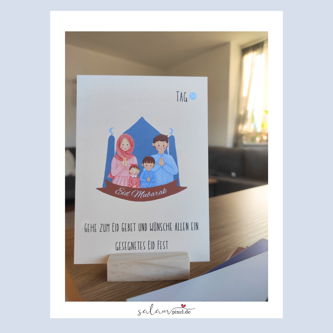 - Ein Holzaufsteller, um die tägliche Ramadan-Karte sichtbar zu präsentieren.
