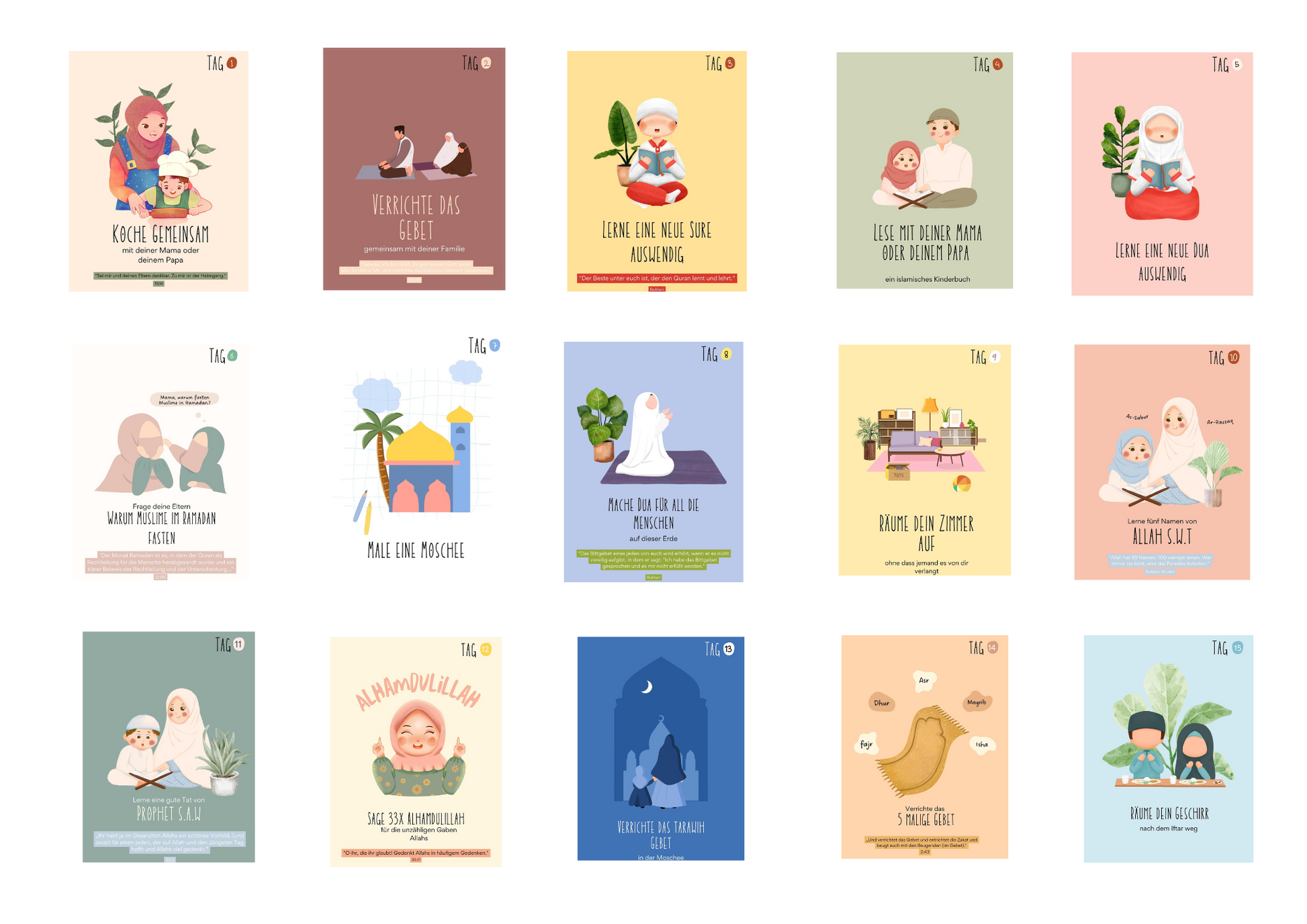 Um unseren Kindern einen unvergesslichen Ramadan zu ermöglichen und diesen heiligen Monat sinnvoll auszunutzen haben wir 30 Karten entwickelt.